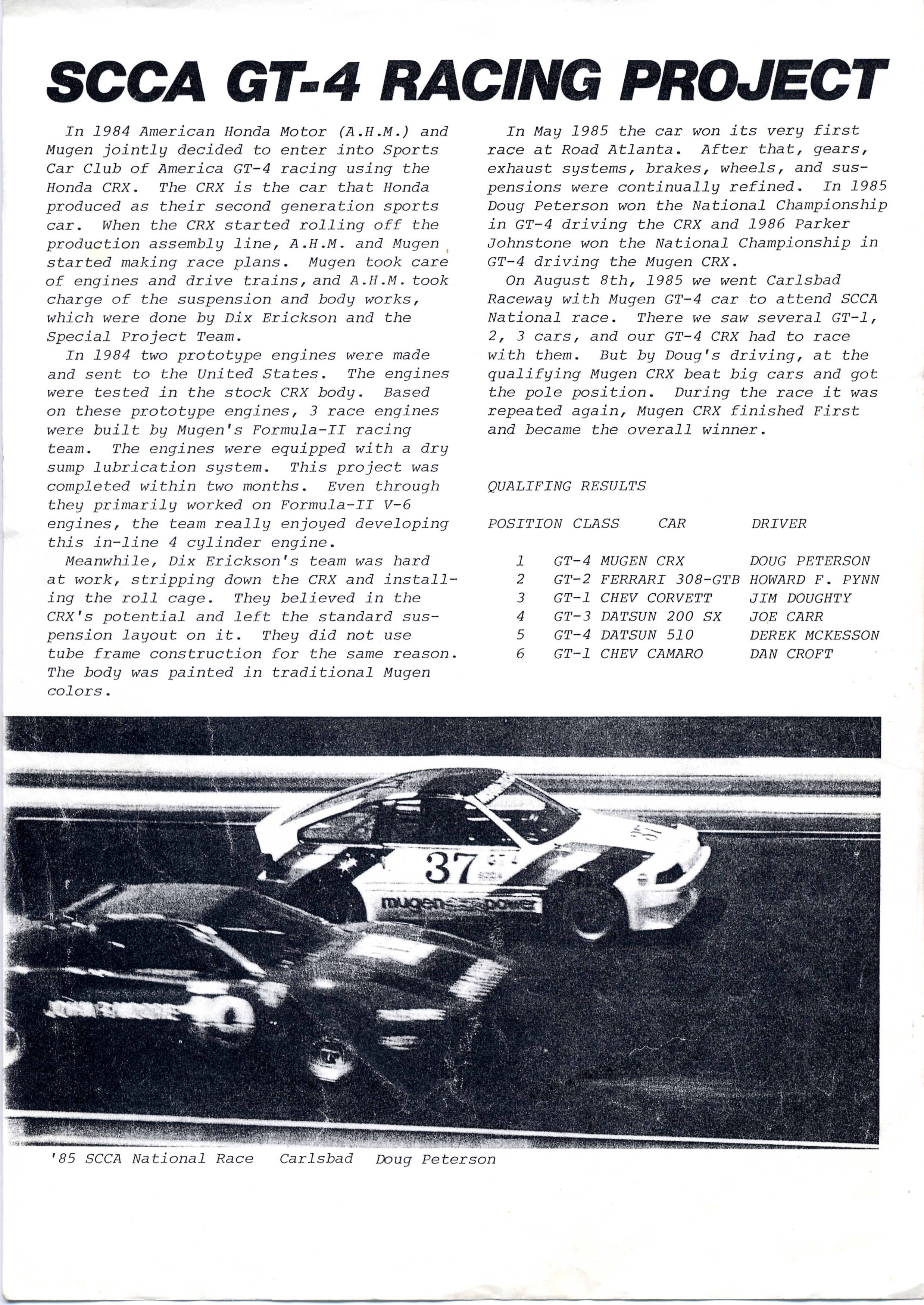 それで、私のCR-Xは再度無限SCCA仕様を作る事になった訳です。